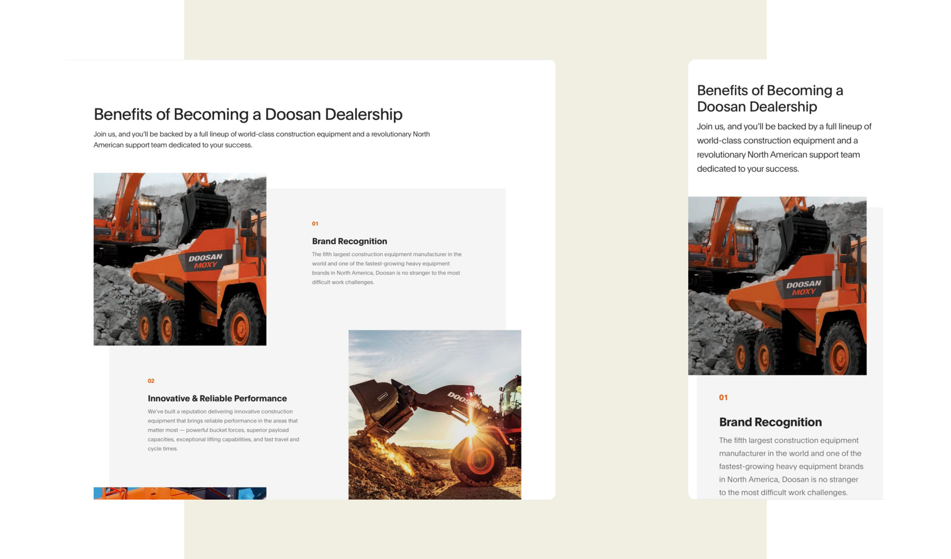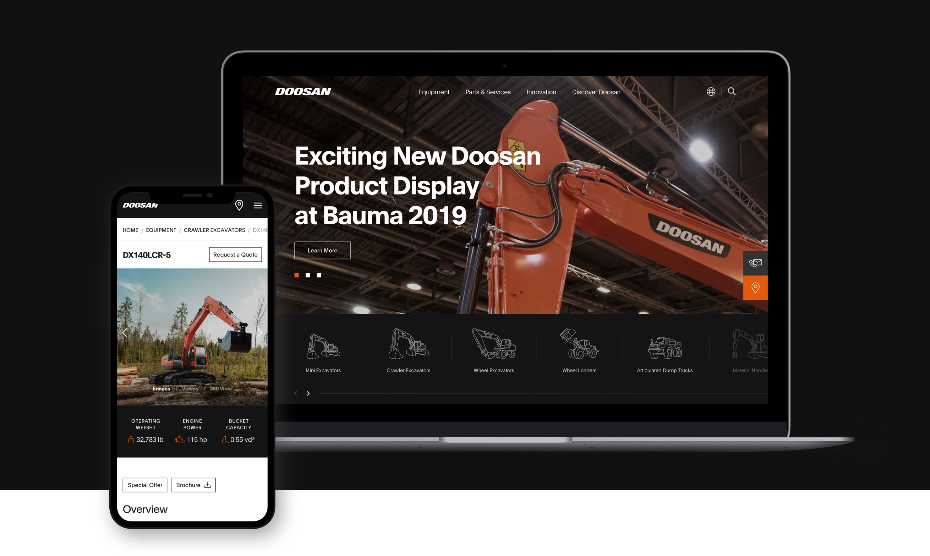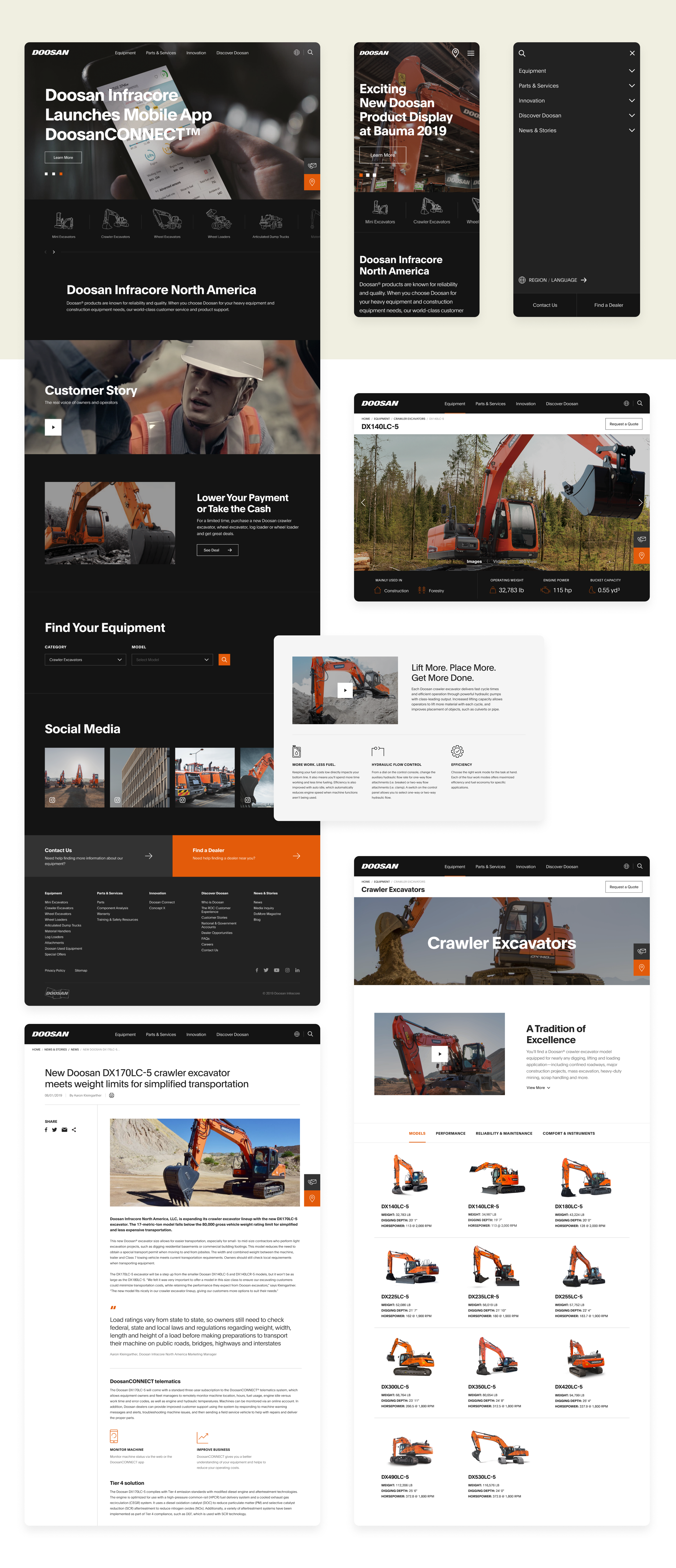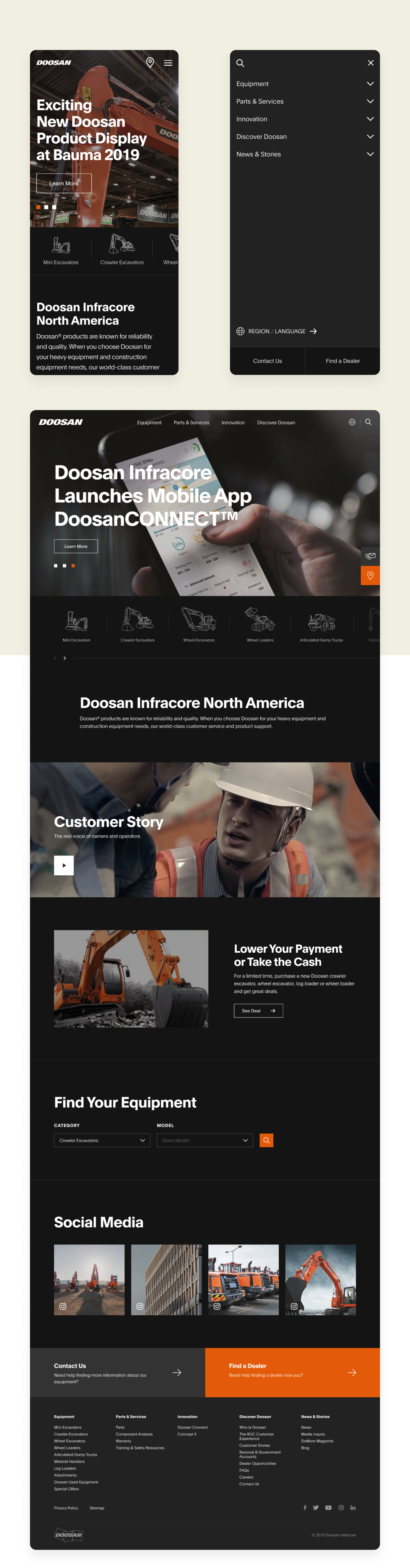 Doosan Infracore recently finished rebranding came to us with couple homepage concepts. They wanted to expanded new branded website to rest of websites as a responsive design. The main challenge here was to create good user experience and applying new branding.