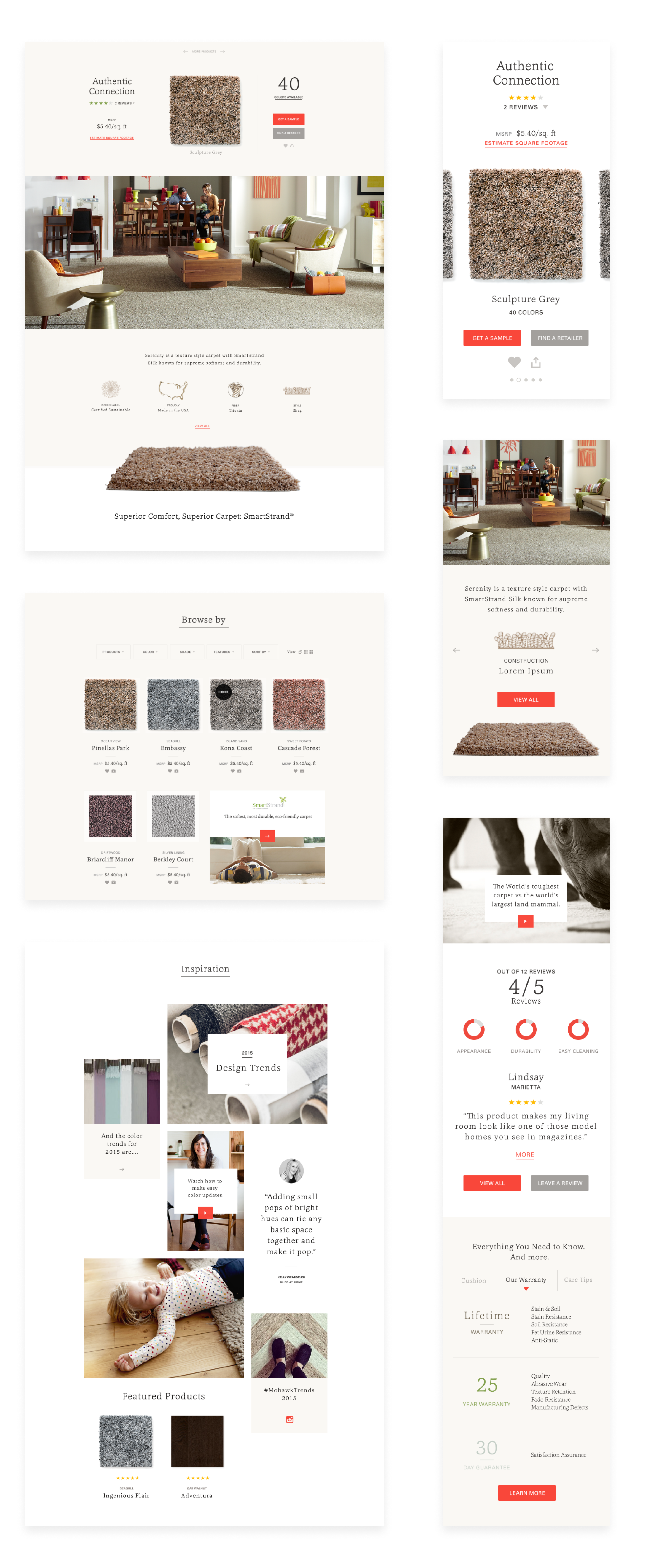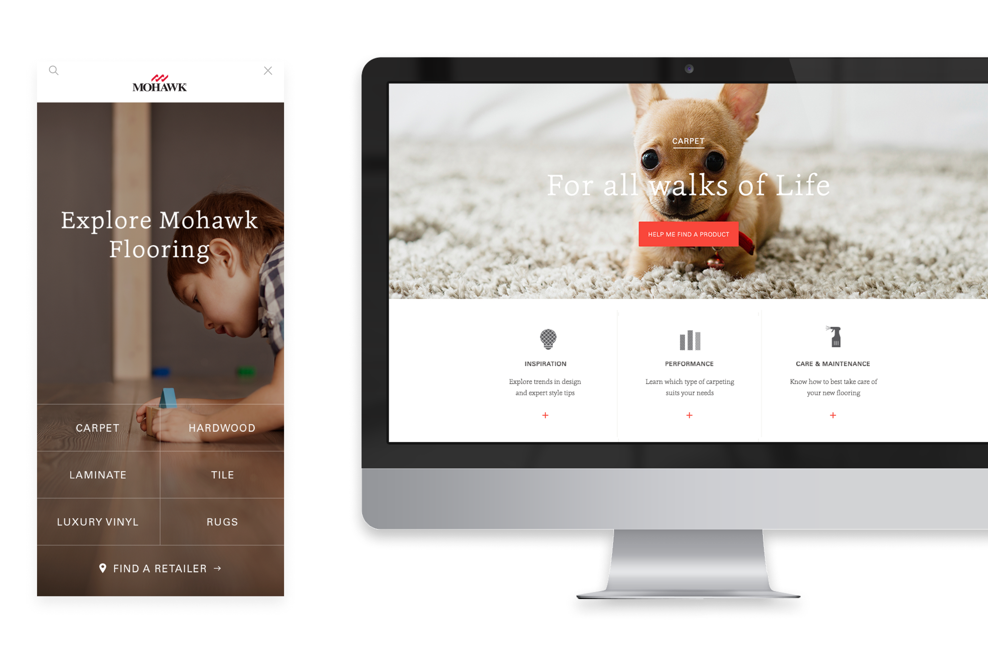 We wanted to focus on people who uses the flooring and their life styles. The tone we used is soft and warm. I designed all icons specificly for Mohawk that shows their product features.